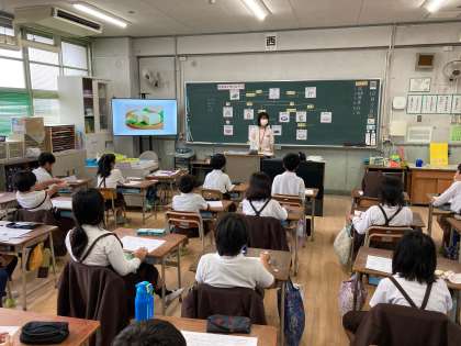 1学期に育てた大豆(えだまめ)を振り返りながら、大豆からできる食べものについて、そしてその食べものがどんなふうに作られるのかについて学習しました。