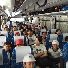 高速自動車道に入りました。乗車したばかりですので、みな酔うこともなく、元気そうです。