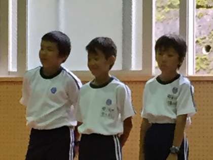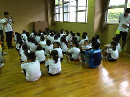 プレイホールにて夕べのつどいが始まりました。北恩加島小学校だけではなく、同宿する他校の児童と一緒に行います。3名の児童が代表としてあいさつをしました。うまく北恩加島小学校のことを紹介できたかな?他校の児童ともよい交流ができればいいですね。