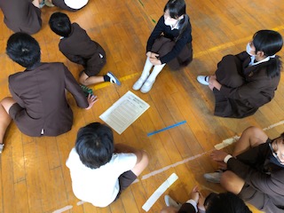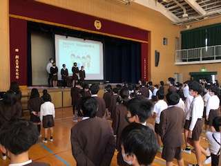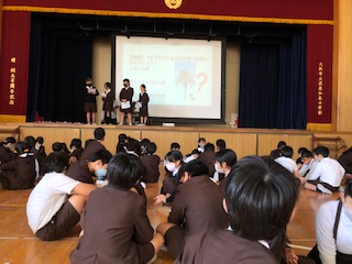 100周年当日の児童集会は、北恩加島小学校のクイズ大会でした。