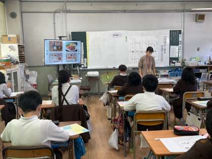 4年生では、国語科の中で「くらしの中の和と洋」という学習をしています。国語科では、主に衣食住の「住」について学習しましたが、今回は食育ということで、「食」に関する和と洋について学習をしました。