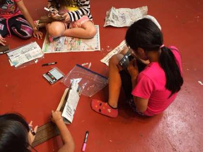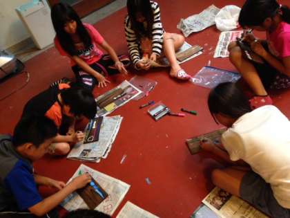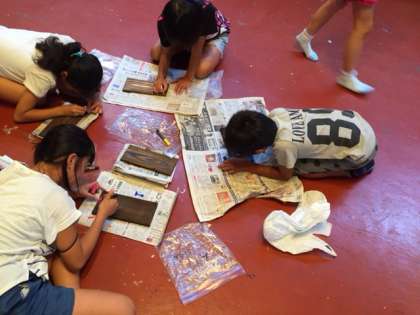 焼板制作が始まりました。みんな、思い思いに色を重ねています。