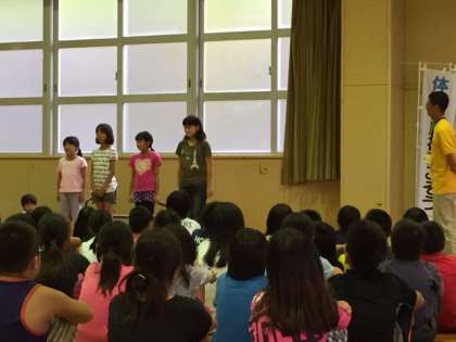 2日目の夕べのつどいが始まりました。だいぶ慣れてきたのでしょうか、よりスムーズに学校紹介ができました。一人一人、自分の役割をしっかりと果たしていますね。いろんな場面が成長できる機会になっていますね。他校との交流も昨日より深まっているでしょうか?