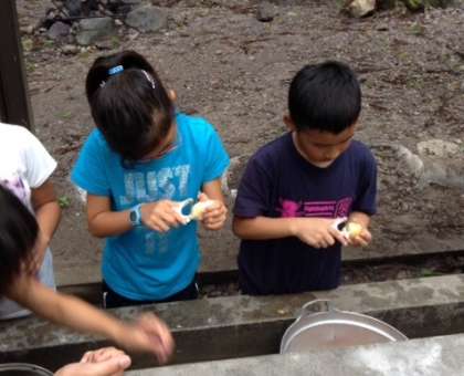まだ紹介していない画像を掲載します。クライムウォールを楽しんだり、ジャガイモの皮をむいたり、野菜を切ったり、いろいろな体験を通して子どもたちは学び、成長しています。雨模様で室内での取り組みが多くなっていますが、子どもたちは林間学習を楽しんでいます。2日目の夜は、ちょっとこわ〜い体験も予定しているようです。今日の報告はここまでとさせていただきます。たくさんの方々にご覧いただき、うれしい限りです。