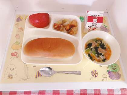 これに「りんご」を1人1/4切れずつ組み合わせています。