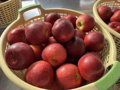 今日のりんごは、岩手県産の「紅いわて」という品種のりんごでした。