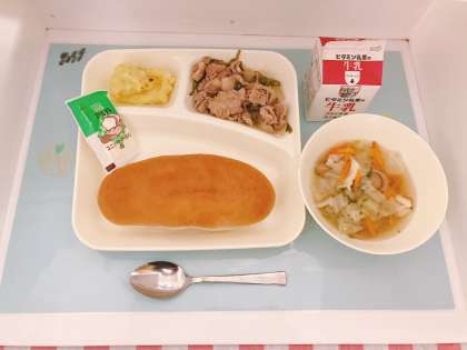 「豚肉と野菜のソテー」は、豚肉とたまねぎ、ピーマンをいため、塩、こしょう、ウスターソースで味つけします。