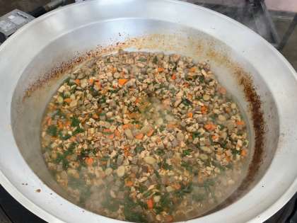 「じゃこ豆」は、ゆでたちりめんじゃこと片栗粉をまぶして、なたね油で揚げた大豆に、甘辛い調味液をからませたかみごたえのある、児童に好評な献立です。