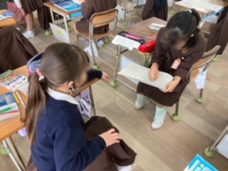 国語科の学習で、自分の好きな本を紹介しました。本の中でおもしろかったところを絵や文章を使って上手に伝え合うことができました。
