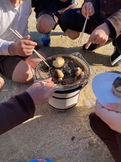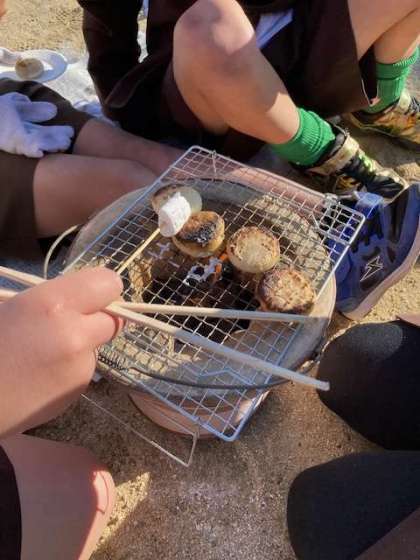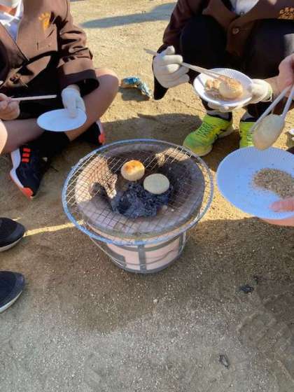 みんなで焼いて食べた餅のおいしさは格別でした。特製きな粉の秘密は、、、