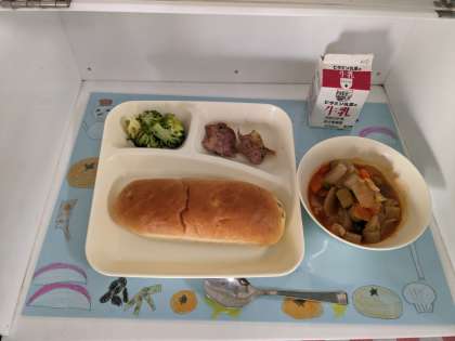 「ウインナーと野菜のケチャップ煮」は、ウインナーを主材に、じゃがいも、たまねぎ、キャベツ、にんじん、青みにグリーンピースを使用し、ケチャップ、チキンブイヨンなどで味つけした煮ものです。