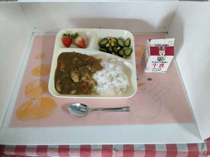 「チキンレバーカレーライス」は、不足しがちな鉄を補う事を目的に、鶏レバー(ペースト)を使用しています。鶏レバーの臭みをおさえるために、みじん切りのしょうがを使用しています。また、混ざりやすさを考えて、鶏レバー(ペースト)はじゃがいもを煮た後に加えるようにしています。