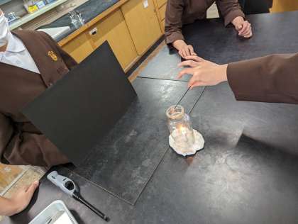 空気が入れかわって新しい空気にふれると、ものはよく燃えるということがわかりました。