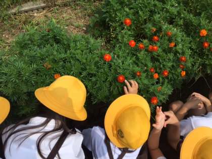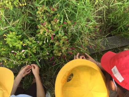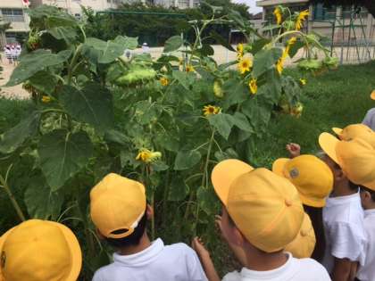 夏休みにぐんぐん大きくなった草花を見て、みんな「私の背より高い」「夏休み前と全然違う」と口々に話していました。