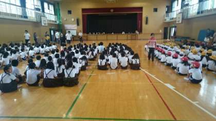 8日(火)、暴風警報が発令されたことを想定して避難訓練を実施しました。学校にいる間に暴風警報が発令されると、状況を見て集団下校をすることになります。今日の訓練では、全児童が講堂に集まり、集団下校の班に分かれるところまでを確認しました。みんな静かに、すみやかに行動して、とても立派な態度でした。