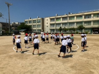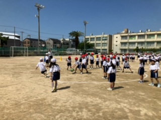 初めてのボールを使った中当てをしました。みんな楽しく活動していました。