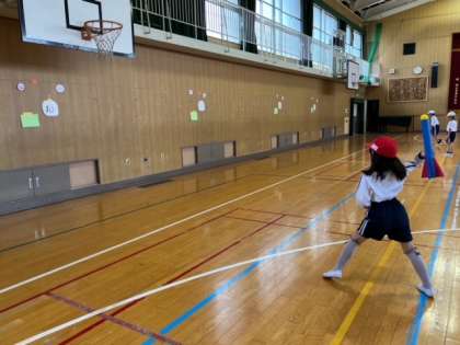 ボールを投げる基礎となる動きが、楽しみながら身についてきました。