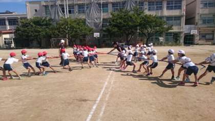 運動会での3年生の団体競技、今年は四方綱引きを行います。赤と白で1本の綱を引き合うのではなく、四方から引き合います。単純な力勝負だけではなく、力のバランスや駆け引きなど頭脳的な要素が多くなるようです。どんな勝負になるかご期待ください。