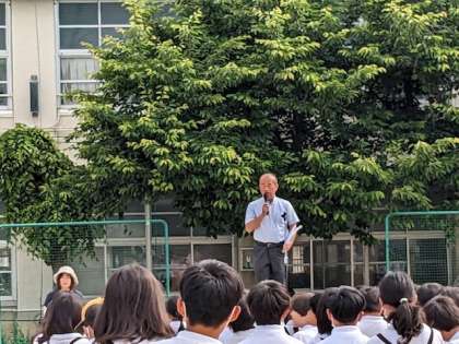 今朝の児童朝会では「いじめについて考える日」の意義をふまえ、校長先生からお話がありました。