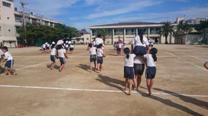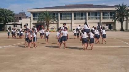 今年の騎馬戦は5・6年合同で行います。騎馬が多くなるので、おそらく例年よりさらに勇壮に見えるはず?でも、今日はまだ帽子はかぶらずに、騎馬を組んで移動したり、3回戦それぞれのルールや対戦相手、細かな動きを確認したりしました。十分に慣れてから、白熱した勝負を見せてください!