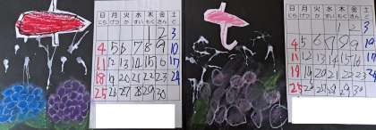 ※なかよし学級で学習する5年生が、教室や職員室、校長室に掲示するカレンダーを毎月作っています。アジサイと雨と傘を描きました。