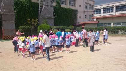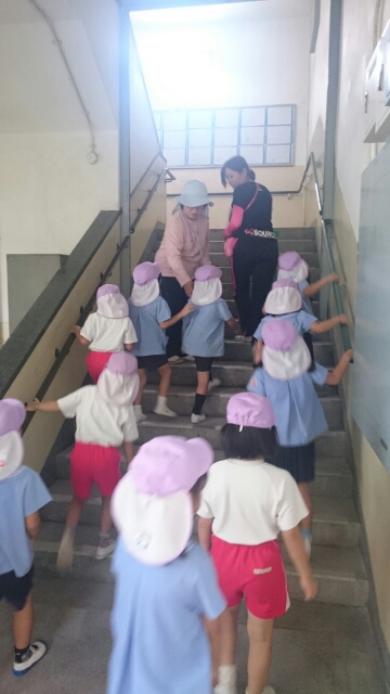 18日(金)、北恩加島幼稚園が避難訓練を行いました。地震と津波を想定した訓練です。北恩加島幼稚園では津波の際、本校の校舎に避難することになっています。幼稚園から運動場を横切り、人数を確認してから校舎に避難しました。小学校の階段は園児にとって段差が大きいので、今日は年長組だけ3階に上がりました。3学期には小学校と幼稚園合同での避難訓練を行う予定です。