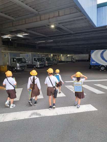 生活科の学習で校区探検に出かけました。行き先は、甚兵衛渡船場と佐川急便でした。学校で考えてきた質問を施設や会社の人に投げかけ、生の声で答えてもらい、新たに知ることの喜びを感じていました。。