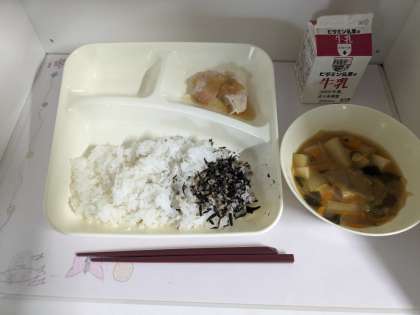 「みそ汁」は、じゃがいも、とうふ、キャベツ、たまねぎ、にんじん、わかめを使用しています。