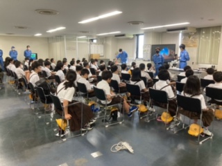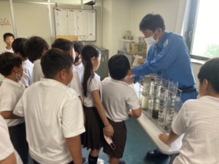 4年で千島下水処理場の社会見学に行きました。下水処理場の皆さんが普段の生活で使う水をどのようにきれいにして川に流していくかを説明していただきました。