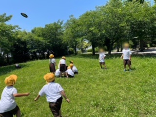 とても良いお天気に恵まれ、公園へ行くことができました。元気に歩き、友だちと仲よく遊ぶことができました。
