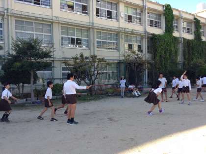 各クラスに大なわが配られ、北恩加島小学校は空前の大なわとびブームです。6年生もクラス対抗ではないですが、大なわを跳びました。