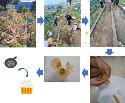実は・・・台風前に実っていたポップコーンを収穫していました!!!片付けの後は、粒を一つずつ外す作業をしました。おいしいポップコーンができるといいな!