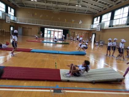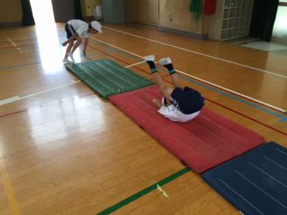 10月の体育の授業では「マット運動」に取り組んでいます。