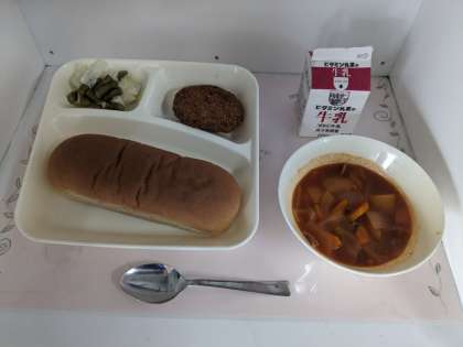 「ケチャップ煮」は、豚肉、じゃがいも、たまねぎ、にんじん、さんどまめ、トマト(缶)を使用し、ケチャップなどで味つけした煮ものです。