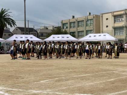 ラグビーW杯さながらの入場の後、きたおかオリジナルのハカで、1組2組お互いの士気を高め合いました。迫力がありました!