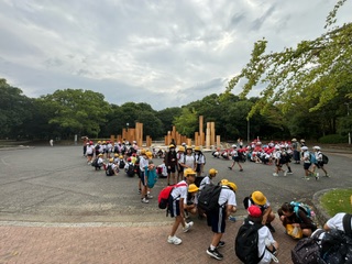 運動会が終わり、早速、4年生は秋の遠足で大泉緑地に行ってきました。大泉緑地に着くと、ラグビーのユニフォームを着たゴリラさんが迎えてくれました!