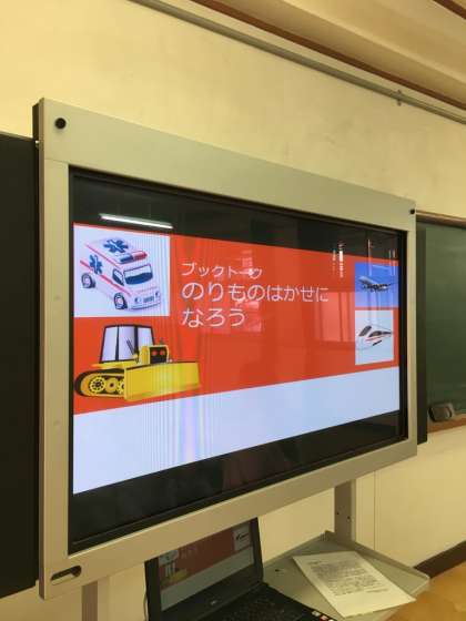 1年生では定期的にブックトークを行っています。2学期の第1弾は乗り物についてのブックトークを行いました。