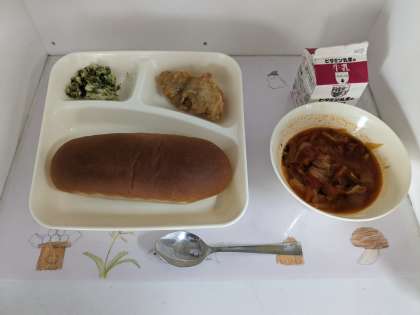 「ミネストローネ」は、鶏肉、キャベツ、たまねぎ、トマト(缶)、にんじん、青みにパセリを使用しています。にんにくとオリーブ油で香りよく仕上げた具だくさんのスープです。
