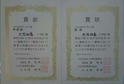 朝会では、昨日の区民まつりでがんばったリレーの5・6年生に表彰状が渡されました。全校児童の前で褒め称えられた子どもたちは、とても誇らしげでした。