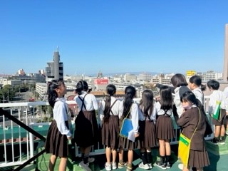 大正区役所に社会見学に行きました。各階の説明があった後には、普段は入ることのできない区長さんの部屋や屋上にも行かせていただきました。区役所の役割について直接話を聞くことで子どもたちはとても勉強になりました。区長さんにもお会いすることができ、喜んでいました。ありがとうございました。