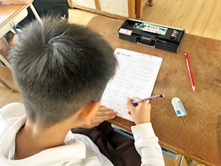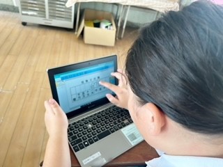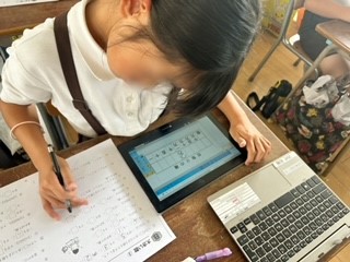 大きい数のプリントに取り組みました。タブレットの位取り表を活用し、取り組みました。