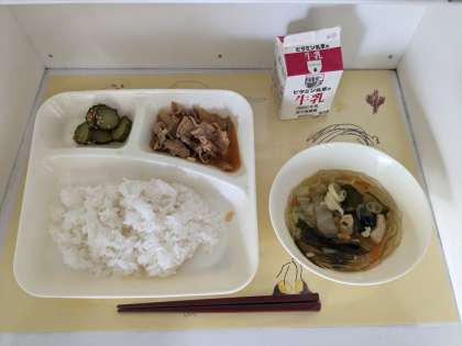「鶏肉とはるさめのスープ」は、鶏肉、はるさめ、はくさい、にんじん、白ねぎ、わかめを使用し、塩、こしょう、うすくちしょうゆ、中華スープの素で味つけしたスープです。