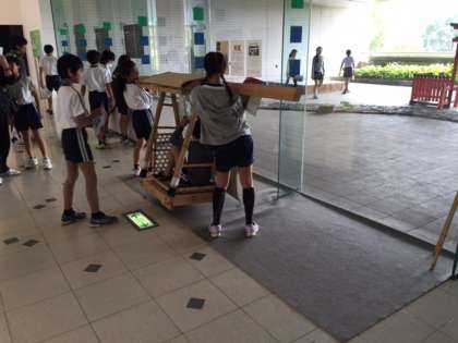 博物館にこんな展示もありました。上の写真は、江戸時代のタクシーでしょうか?エイホエイホと、かごを担ぐ体験ができました。