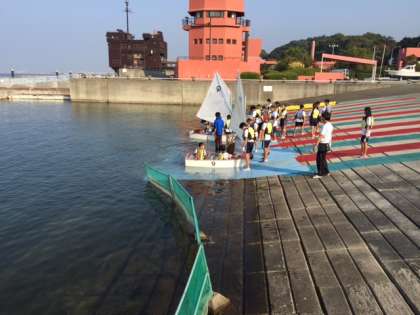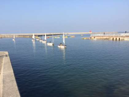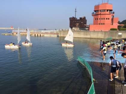 OPヨット体験が終了しました。きれいに並んで帰港しています。