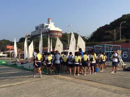 みんなで協力してヨットを片づけています。バックに今日の宿舎がきれいに映っています。いいシーンです。絵になります。