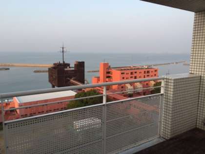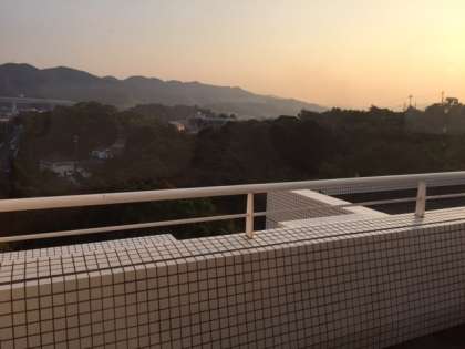 部屋からの風景も、またすてきです。上の写真は、先ほどまで活動していた海洋センターです。下の写真では、夕やけがすばらしいです。