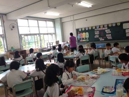 2年2組は今日、ランチルームで給食を食べました。いつもと違った雰囲気で、特別においしい給食でしたね。