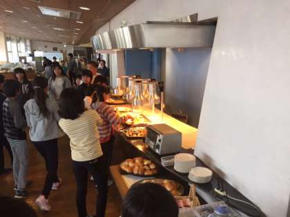 子どもたちは食欲旺盛です。思い思いに盛りつけて食べています。