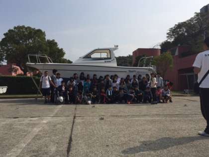カッター体験が終了しました。みんなで集合写真を撮っています。
