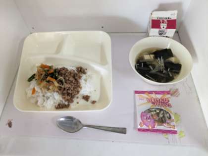 「わかめスープ」は、とうふ、たまねぎ、えのきたけ、わかめを使用したスープです。